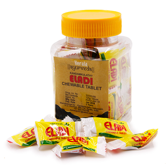 Элади Вати - это аюрведические таблетки, используемые в аюрведе при лечении кашля, простуды, жара и рвоты. Элади Вати применяют: * при кашле, простуде, высокой температуре, рвоте, иктое, головокружении, рвоте с кровью, болях в кишечнике * уменьшает черезмерную жажду, помогает при болезнях селезёнки и подагре * полезны при кровотечениях.